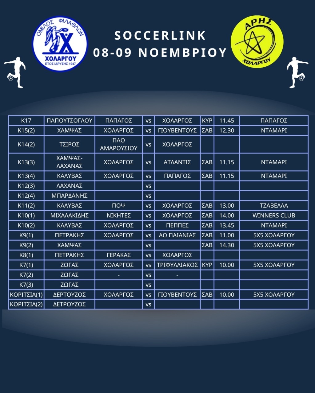 Από αύριο, η Ακαδημία Ποδοσφαίρου Χολαργού λειτουργεί πλέον με δύο γραφεία γραμματείας για την καλύτερη εξυπηρέτησή σας!
