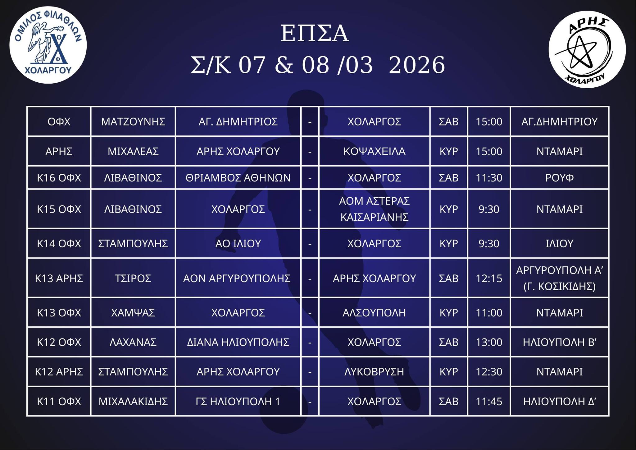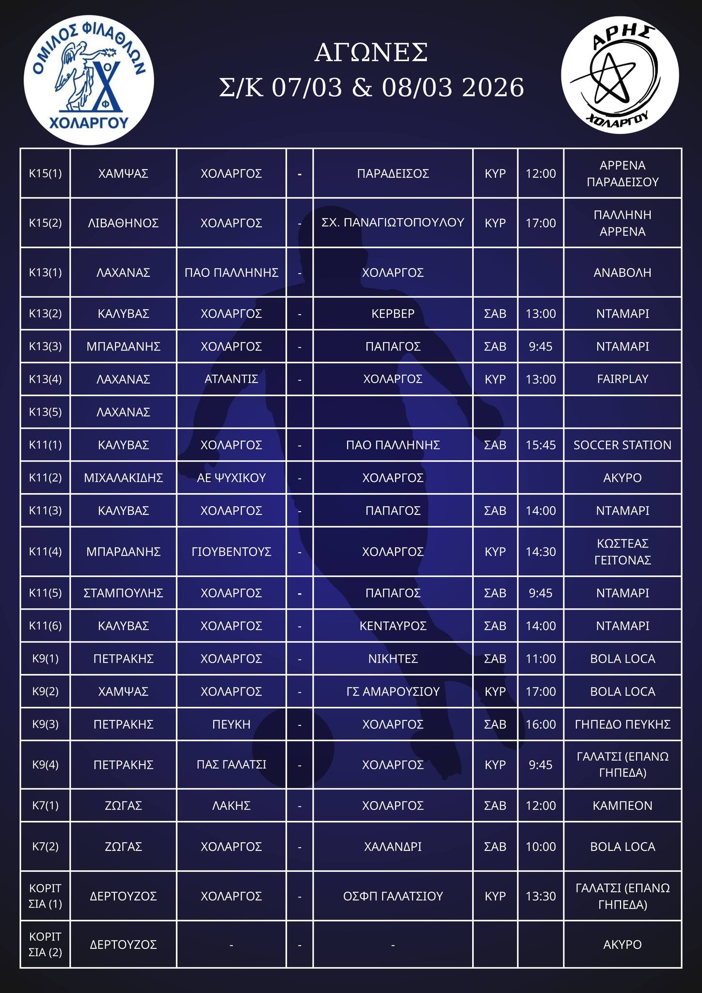 Περισσότερες λεπτομέρειες στο Facebook της ακαδημίας https://www.facebook.com/FootballAcademyOfHolargou/photos/a.2014147522152248.1073741828.2006351929598474/2014147502152250/?type=3&theater