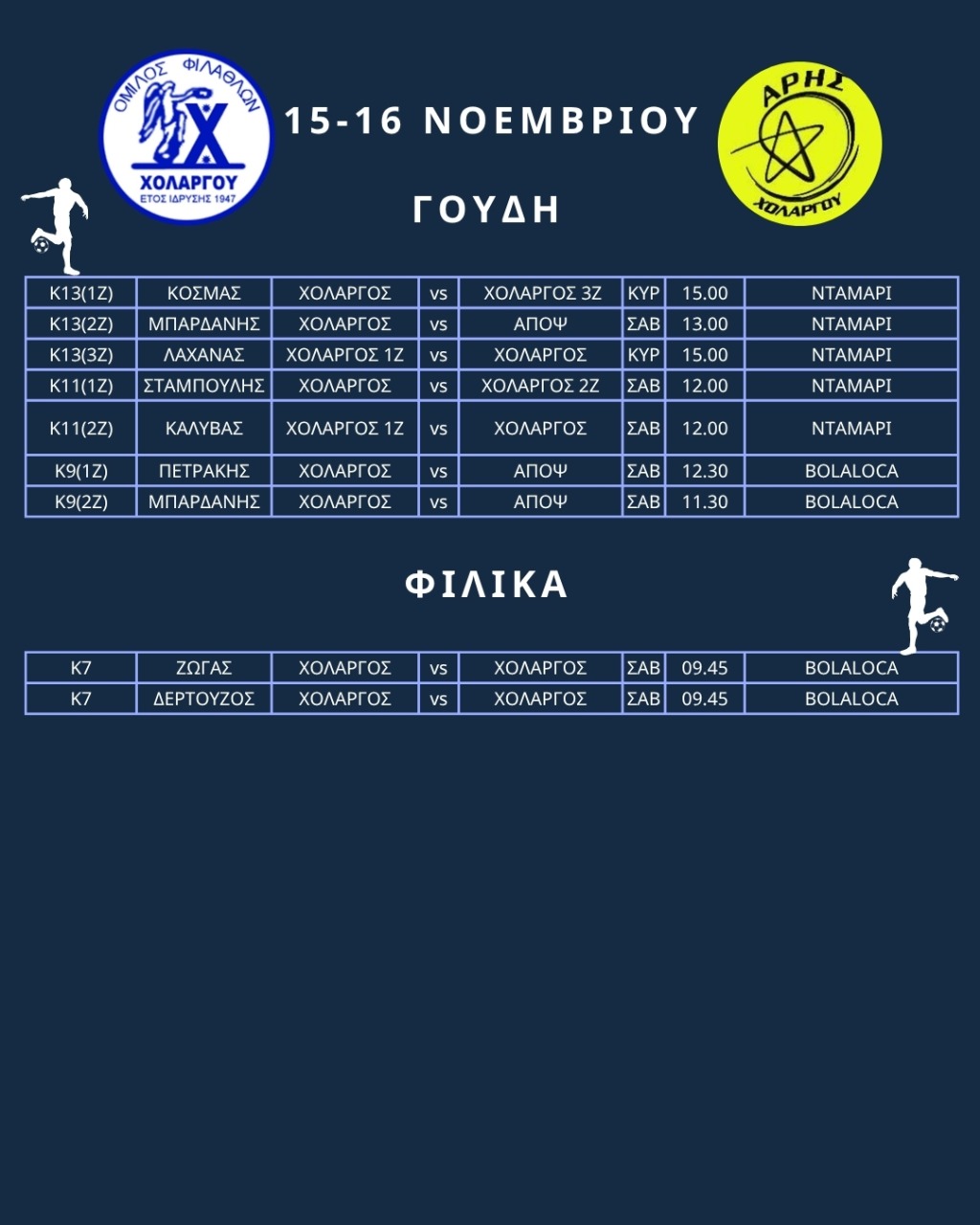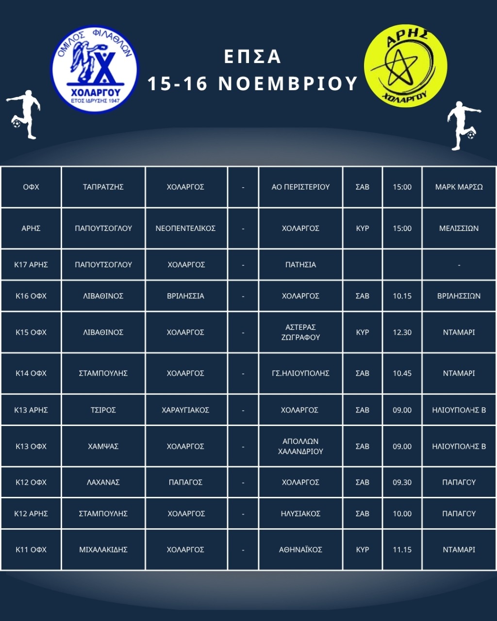 ΑΓΩΝΕΣ ΣΚ 15-16 ΝΟΕΜΒΡΙΟΥ