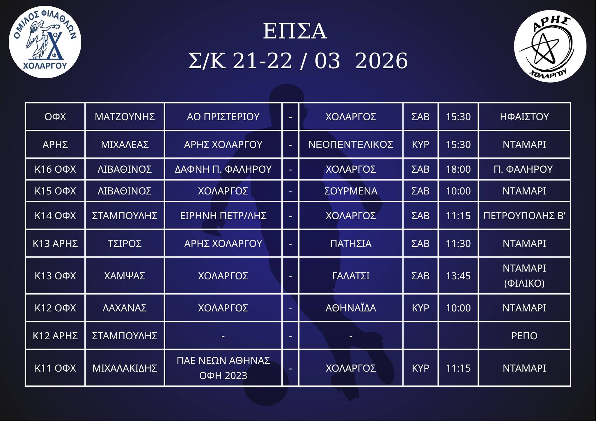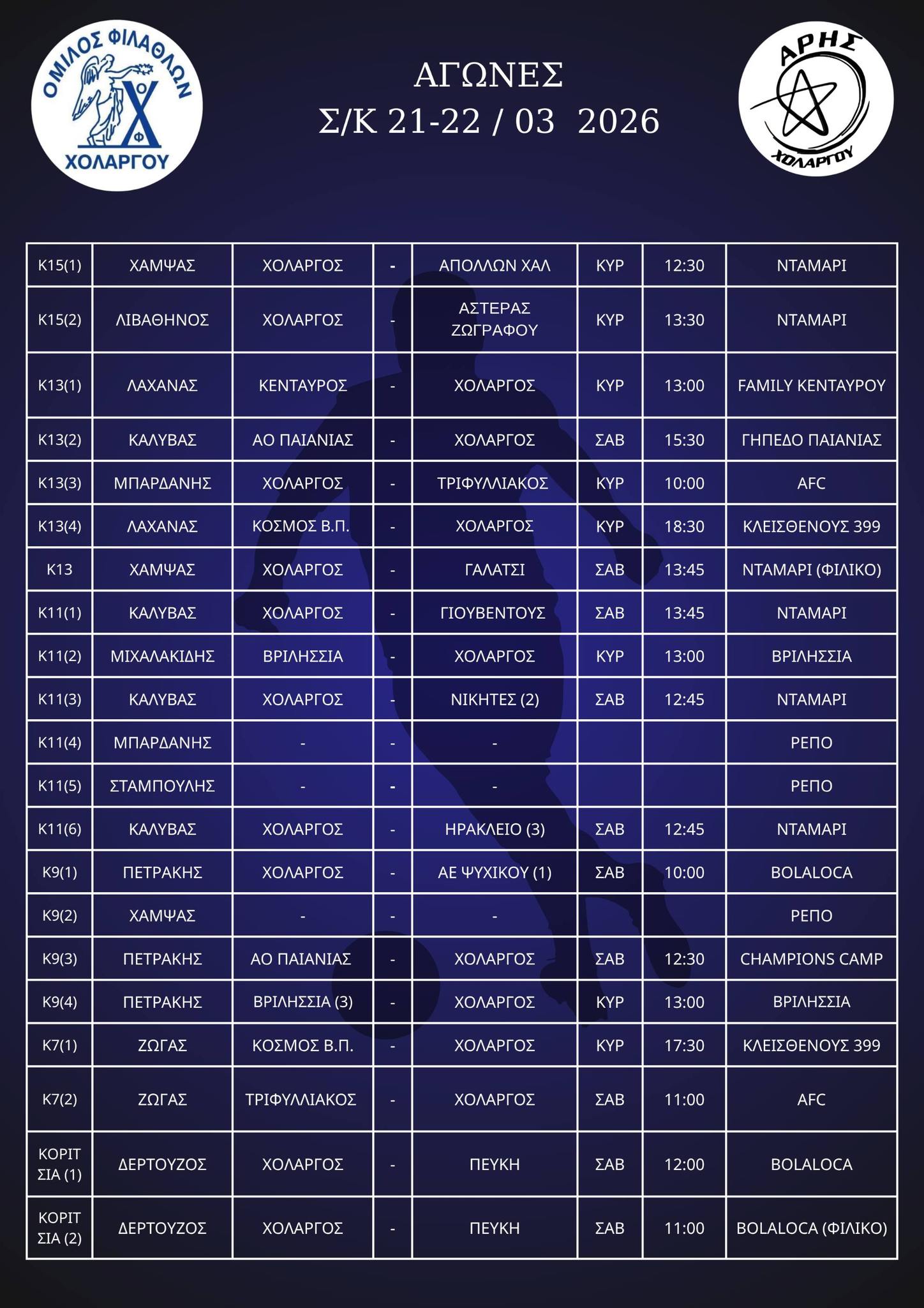 Αγώνες ΣΚ 21-22 / 03 / 2026