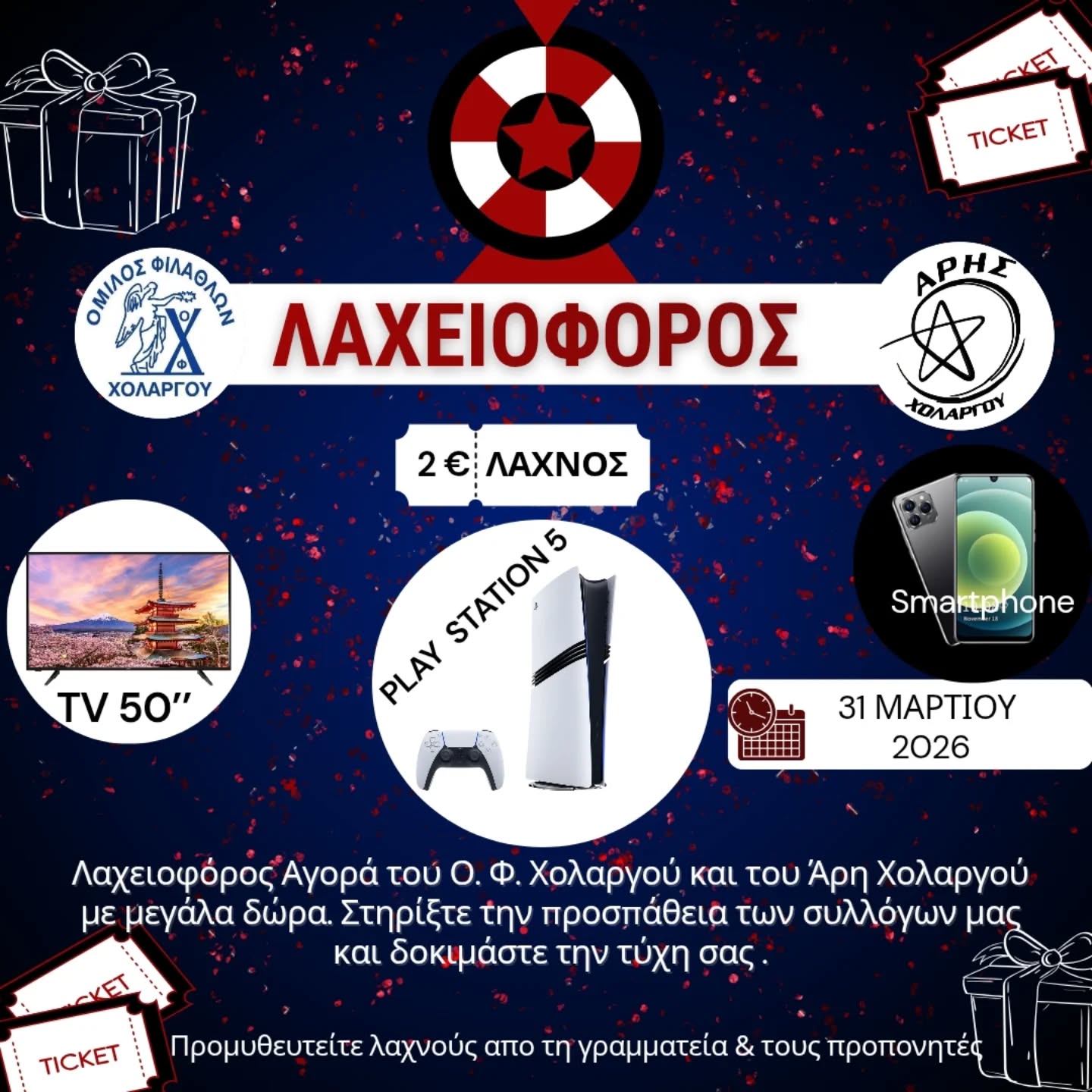 Τα Διοικητικά Συμβούλια του ΟΦ Χολαργού & του Άρη Χολαργού διοργανώνουν Λαχειοφόρο Αγορά και σας καλούν να συμμετάσχετε!