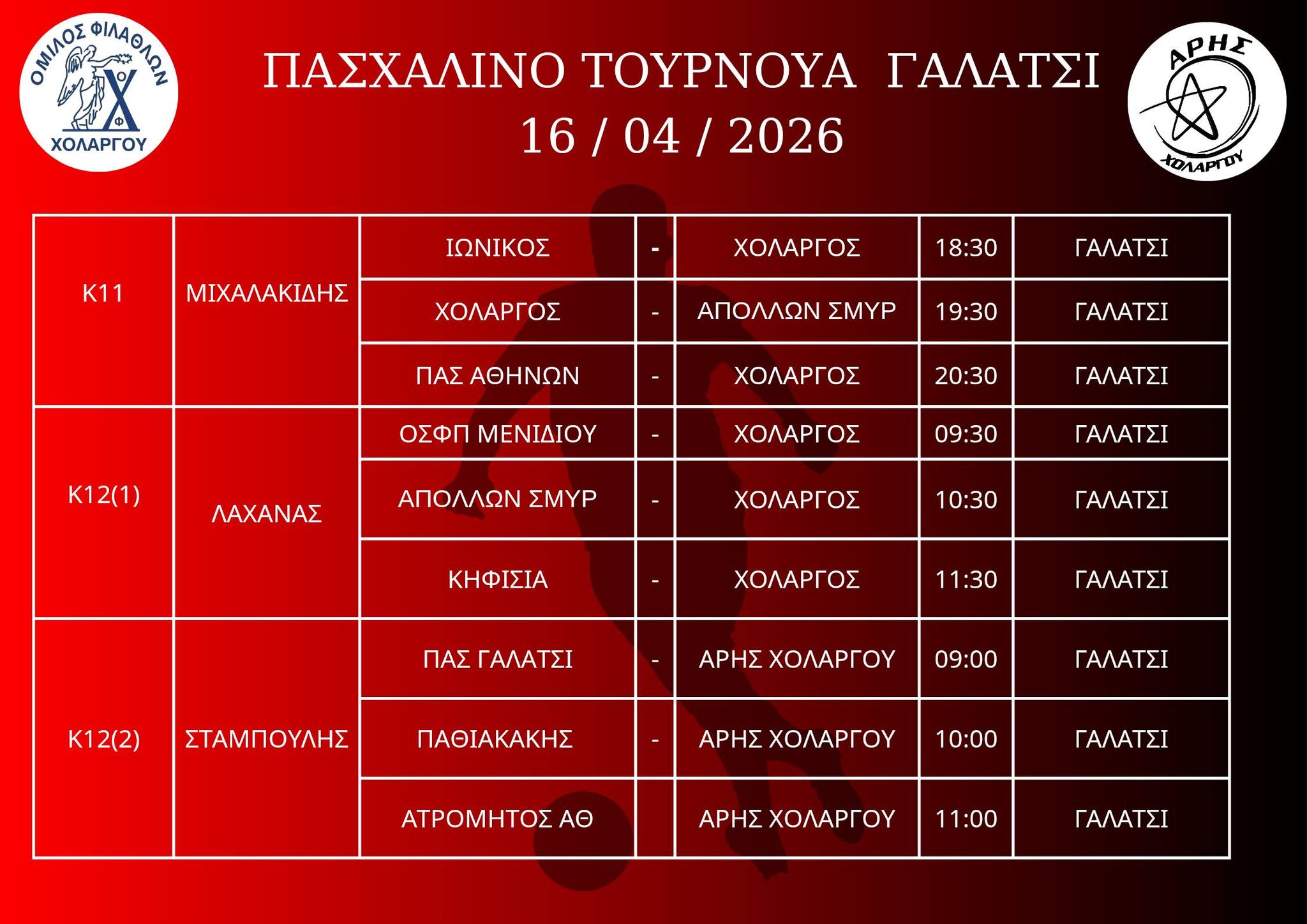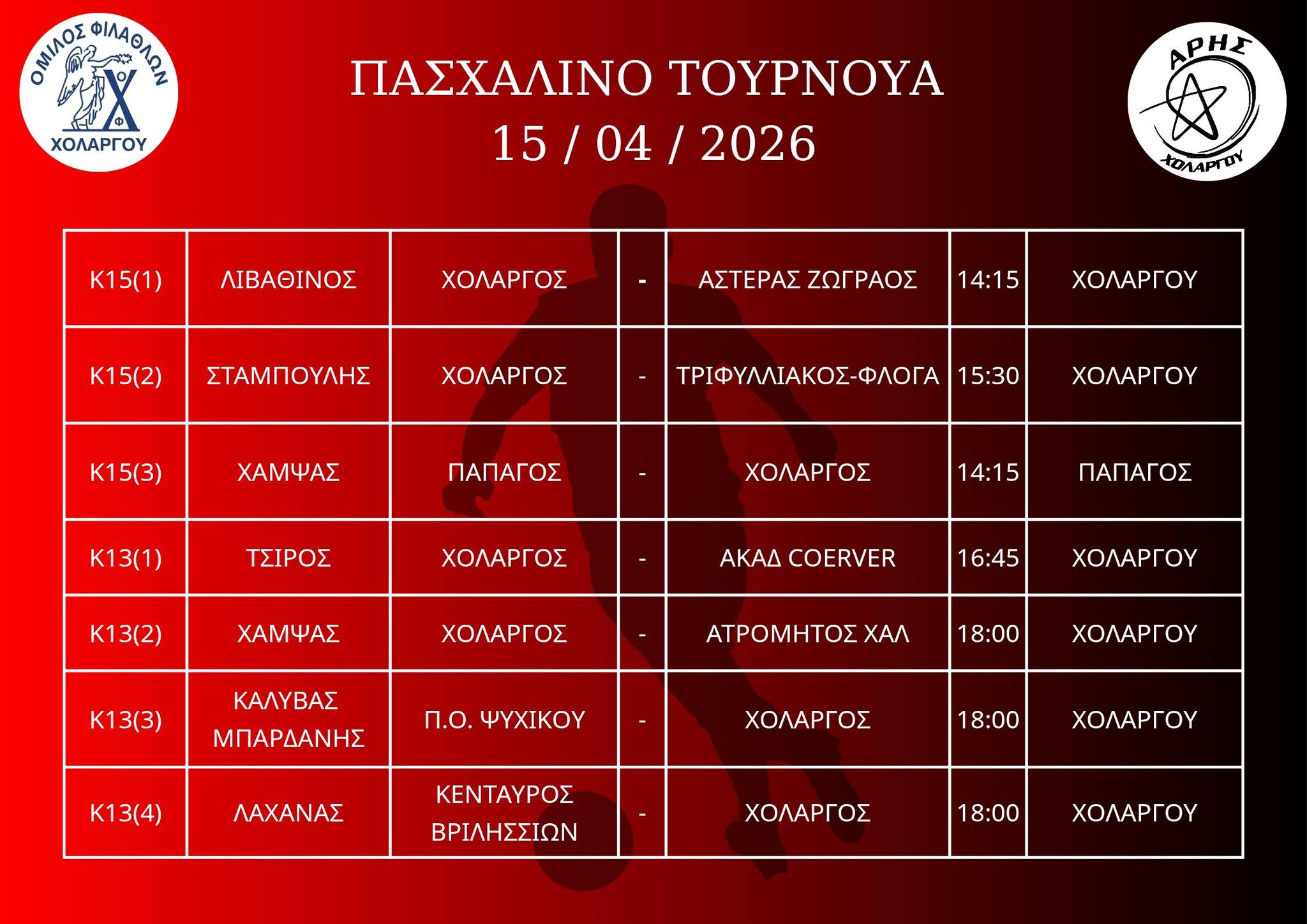 ΠΑΣΧΑΛΙΝΟ ΤΟΥΡΝΟΥΑ 15 & 16 /04