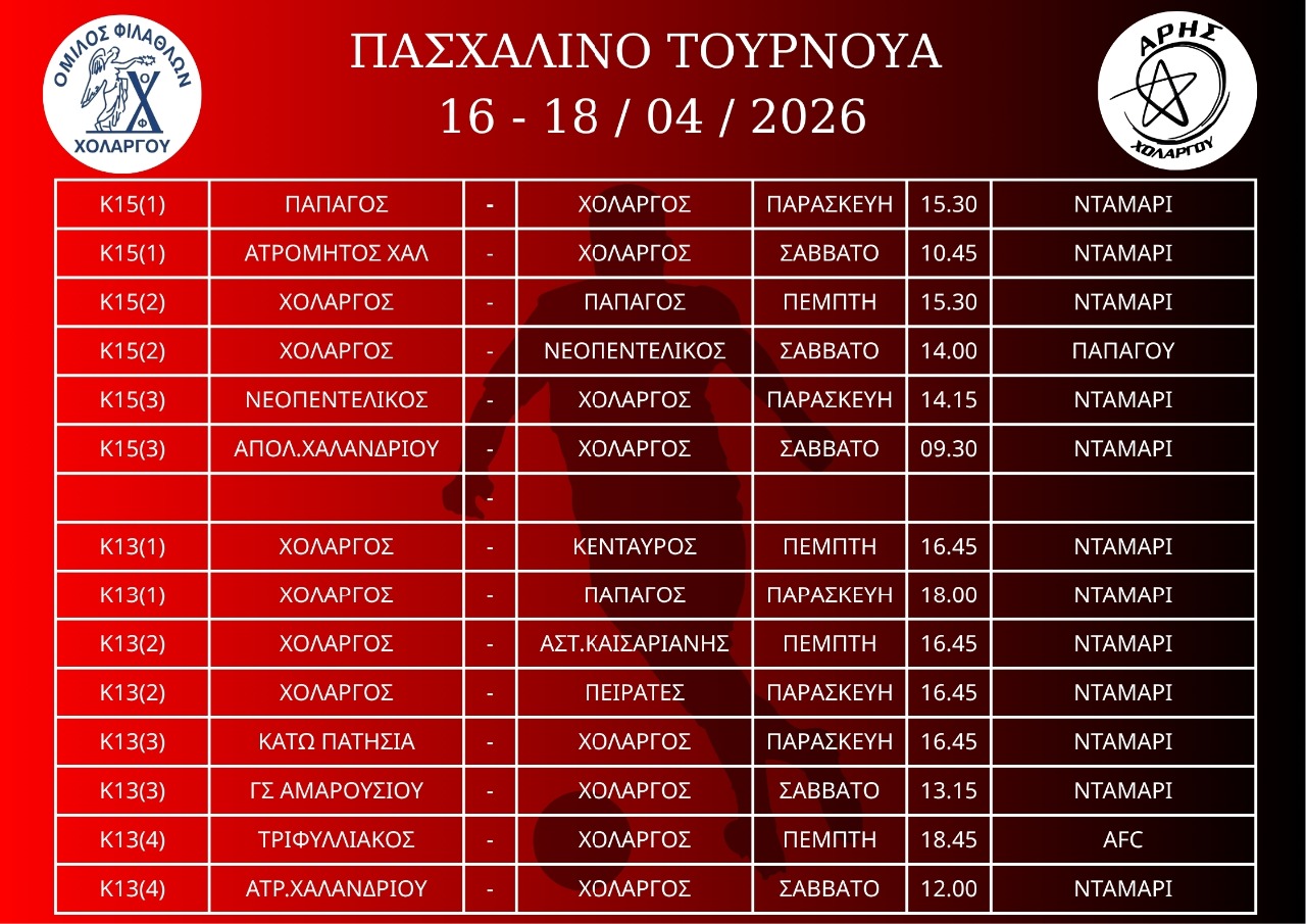 ΠΑΣΧΑΛΙΝΟ ΤΟΥΡΝΟΥΑ 16 & 18-04-2026